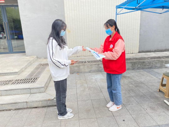 “请保持一米距离”“麻烦提前打开健康码、行程码”“请注意戴好口罩……”在校园的各个角落,都可以看到志愿者的身影,他们一身红马甲,奉献在路上,温暖着校园。志愿者们积极参与到学校疫情防控之中,配合做好宣传教育、健康提示、秩序维护、物资派送、信息收集报送等工作。其中参与文明劝导志愿服务达965人次,主要在食堂,寝室各楼栋、快递站等文明劝导站点,提醒同学们戴口罩、保持一米安全距离、不聚集等。
