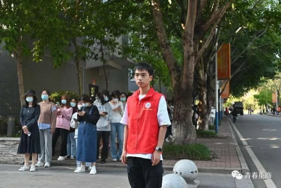 “在平凡岗位上实现自己的青春誓言。”这是志愿者刘官鑫在志愿活动中的深刻感悟,作为志愿者,他积极主动帮助腿脚不方便学生去做核酸检测,为抗击疫情贡献青春力量。或许他们的岗位没有华丽的外饰,没有欢呼与喝彩,但是抗击疫情的战线上却离不开每一位志愿者的奉献与努力。