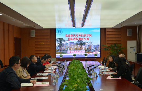 【文/经济贸易学院 图/党委宣传部】3月10日下午,重庆对外经贸学院党委书记、督导专员何大海一行来学校进行调研交流。学校党委副书记、院长江涛,副院长贾小波,教务处负责人、经济贸易学院党政负责人等参加了交流座谈会。