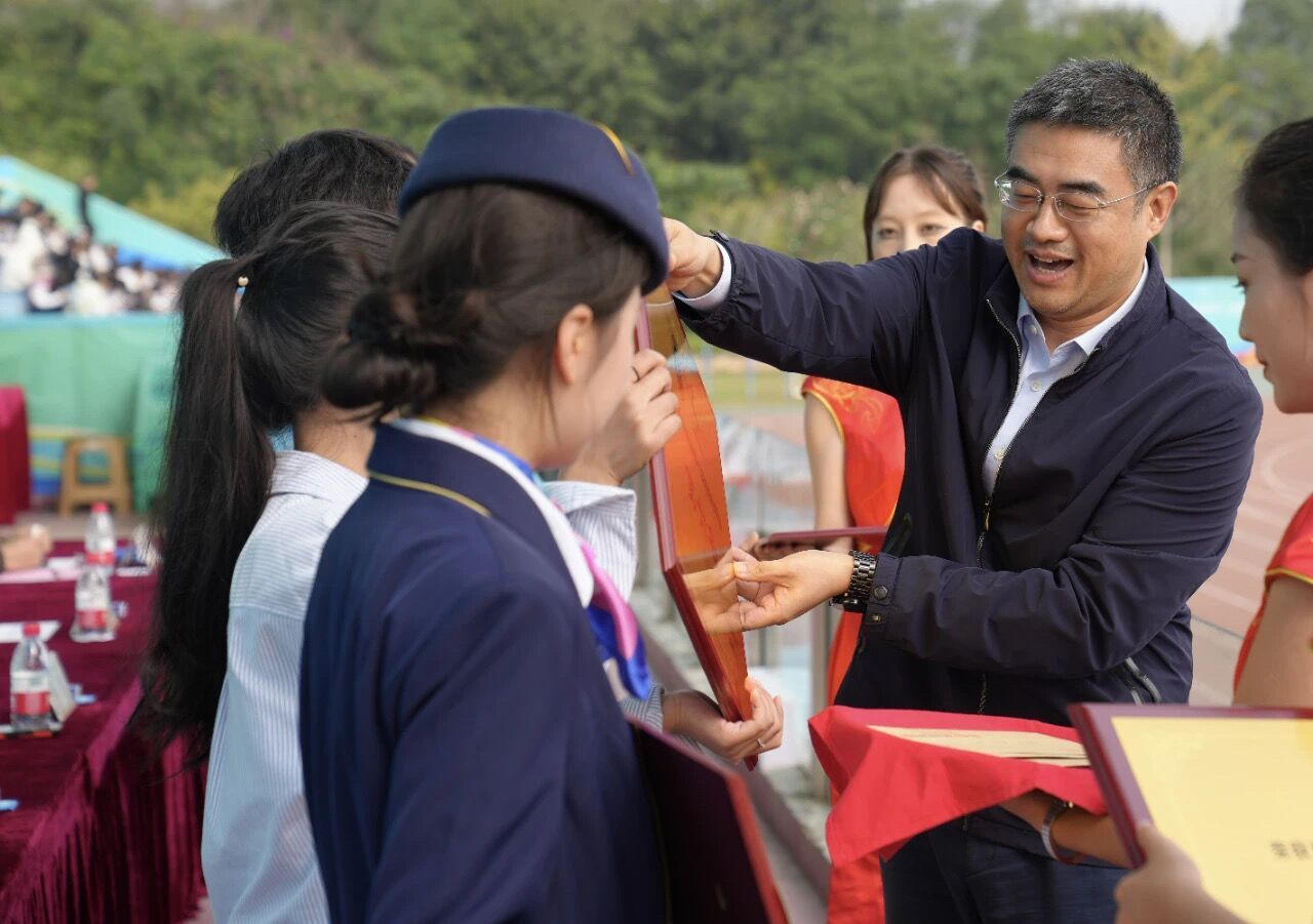 学校领导分别向教职工和学生获奖团体颁奖,并向在运动会上团结协作、奋力拼搏的运动健儿表示最热烈的祝贺,向为筹备本届运动会付出辛勤劳动的老师们、同学们表示衷心的感谢。希望全体师生把这次运动会的精神带到今后的工作和学习中去,爱国、爱家、爱校、爱专业,以饱满的热情、昂扬的斗志、拼搏的精神,将体育运动中所蕴涵的“不断进取、勇攀高峰”的拼搏精神和“自尊自信、自立自强”的人生信念转化为推动学校高质量发展的不竭动力。