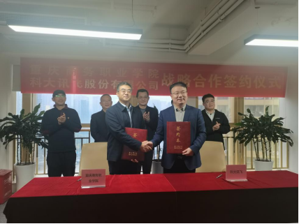 【文/图 教务处】 11月29日,学校与科大讯飞股份有限公司在科大讯飞西南分公司签订校企战略合作协议,院长江涛、副院长贾小波,教务处、人工智能学院相关负责人,科大讯飞重庆公司总经理杨康、重庆公司副总经理黄国帅、渝黔片区运营总监唐发、重庆校企合作总监张安京、工程师代表田高亮出席本次签约仪式。双方就协议落地、合作前景等进行了交流研讨。