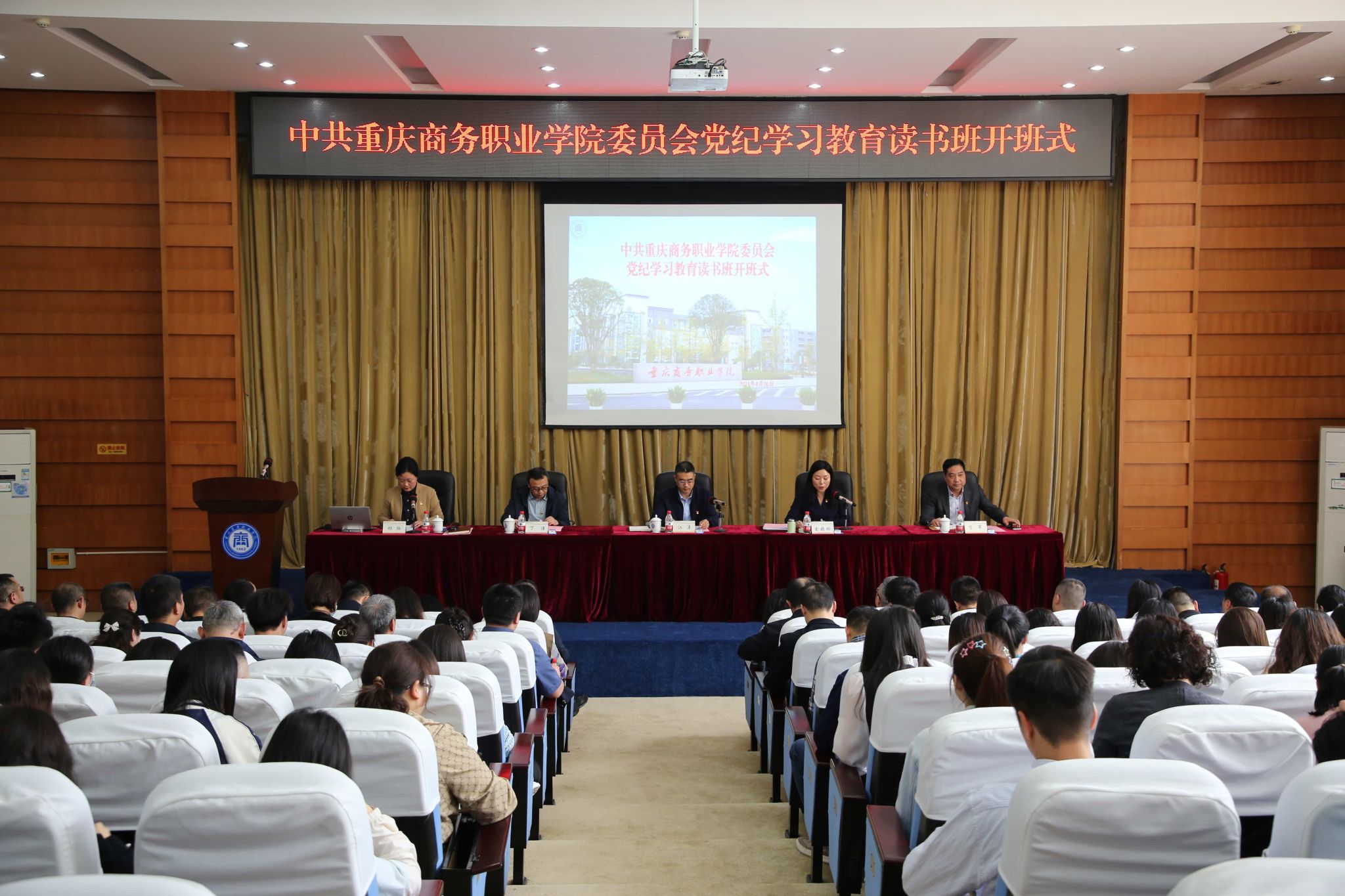 【文/图 党委宣传部】4月26日,学校举办党纪学习教育读书班开班式暨中心组扩大学习会,深入学习贯彻习近平总书记关于党纪学习教育的重要讲话和重要指示精神,认真落实中央有关决策部署和市委工作要求,认真学习新修订的《中国共产党纪律处分条例》。校党委书记江涛做开班动员,在家校领导、党委理论学习中心组成员、副科级以上干部、党员代表参加。