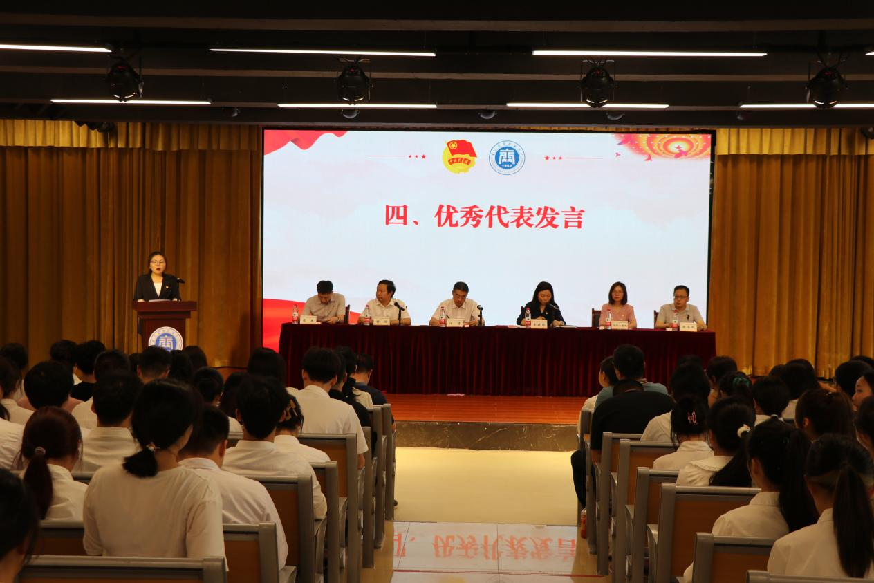 【文/图 团委】2024年是纪念“五四运动”105周年,也是新中国成立75周年,为进一步教育引导广大团员青年继承和发扬五四精神,激发青年挺膺担当,引领广大团员青年坚定不移听党话、跟党走,激发重商青年谱写爱国奋斗的诗篇。5月15日下午,学校在学生活动中心多功能厅举行“2024年五四表彰大会暨‘青春向阳’成长论坛”。学校党委书记江涛,党委副书记余晓玲,副院长舒鸿,党委组织部、教务处、团委负责人,各二级学院党总支书记、副书记、团总支负责人、专兼职辅导员、学生代表出席会议。大会由舒鸿主持。