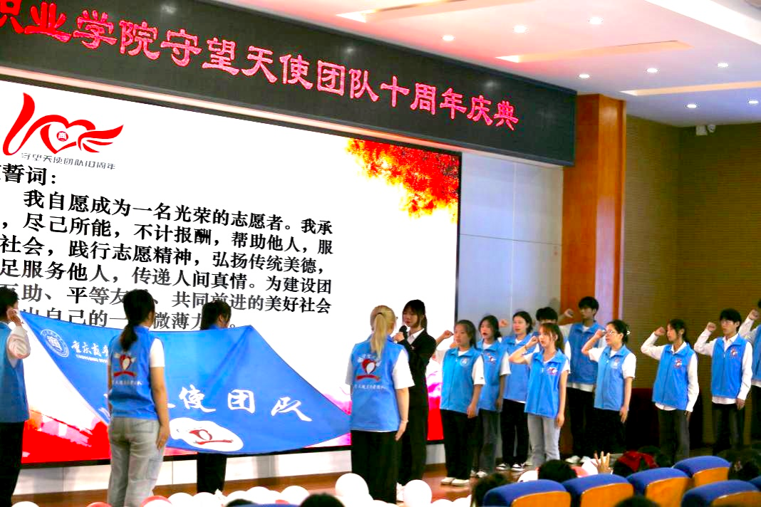 【文/文化旅游学院 图/党委宣传部】5月15日,学校守望天使团队十周年庆典在第二学术报告厅盛大举行。学校副院长舒鸿,党委保卫部、党委学生工作部负责人,文化旅游学院党总支书记、副书记,重庆乐一融合特殊教育学校校长贺小燕以及守望天使创始人李丹、守望天使历届理事长等参加了本次活动。此次活动汇聚了学校领导、师生及社会爱心人士代表,不仅回顾了团队十年来的风雨兼程,表彰了团队中表现突出的志愿服务个人,更进一步激发团队的活力与凝聚力,展望社团未来发展的广阔前景。