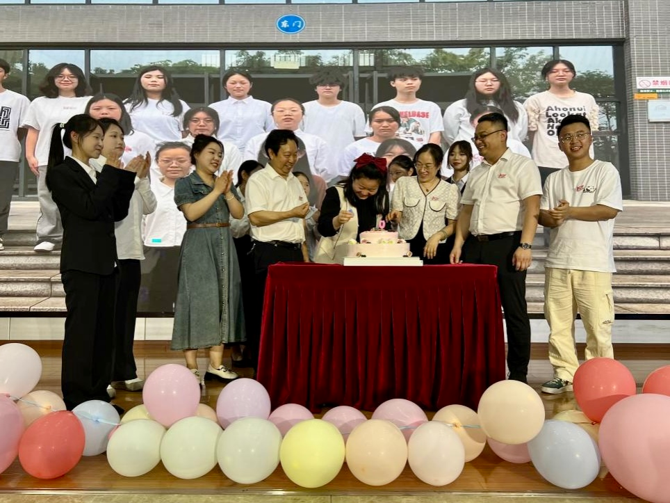 学校副院长舒鸿、文化旅游学院党总支书记与爱心人士代表庆祝守望天使团队十周年生日