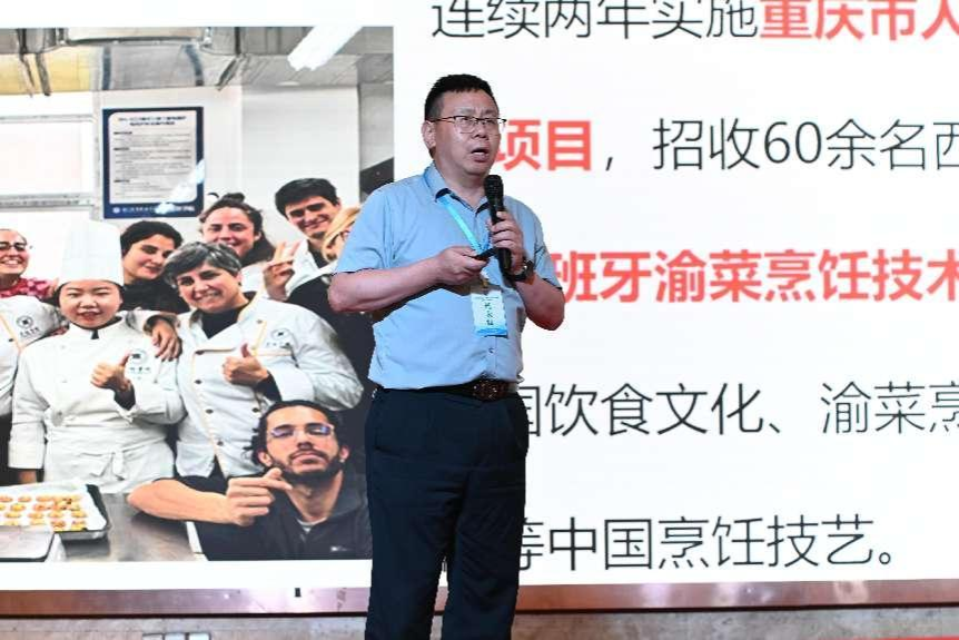 会议安排了八所本科、中高职院校代表在会议上作交流分享。烹饪学院与继续教育学院党总支书记李伟代表学校在大会上交流发言,介绍了学校基本情况和发展成果,分享了烹饪学院推进国际交流合作的具体实践和工作展望。交流分享取得了良好效果,进一步提升了学校在餐饮职教领域的影响力。
