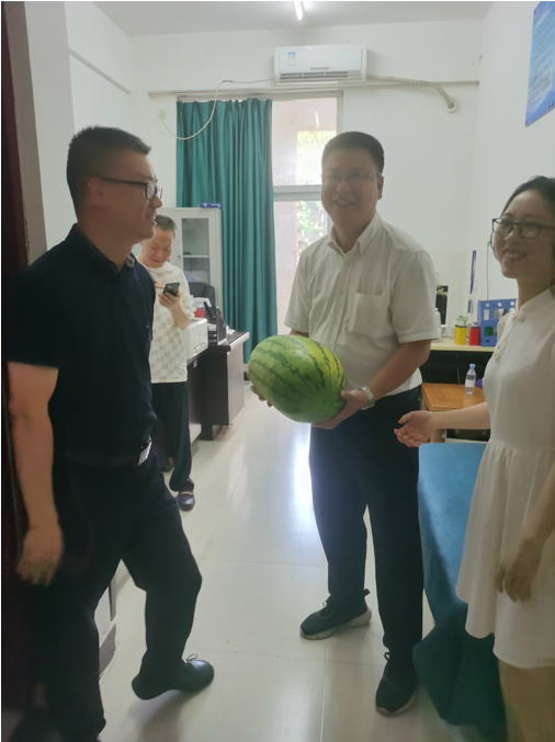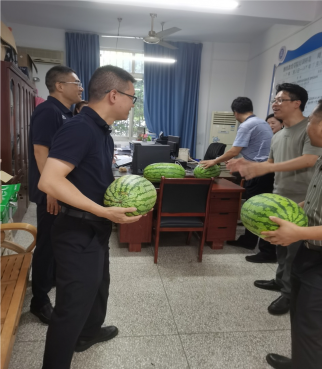 江涛先后看望了安保值班人员、后勤服务人员、继续教育管理人员、实训基地教练及竞赛人员,给他们送去了降温清凉的西瓜和防暑治病的药品,江涛对南岸校区暑期在岗教职工饱满执着的工作热情、战酷斗暑的工作态度、敬业专注的工作作风,给予了充分肯定。