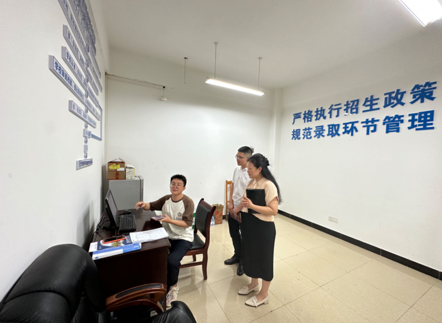 (纪委书记杨梅带领纪检监察室干部进行2024年招生录取监督工作)