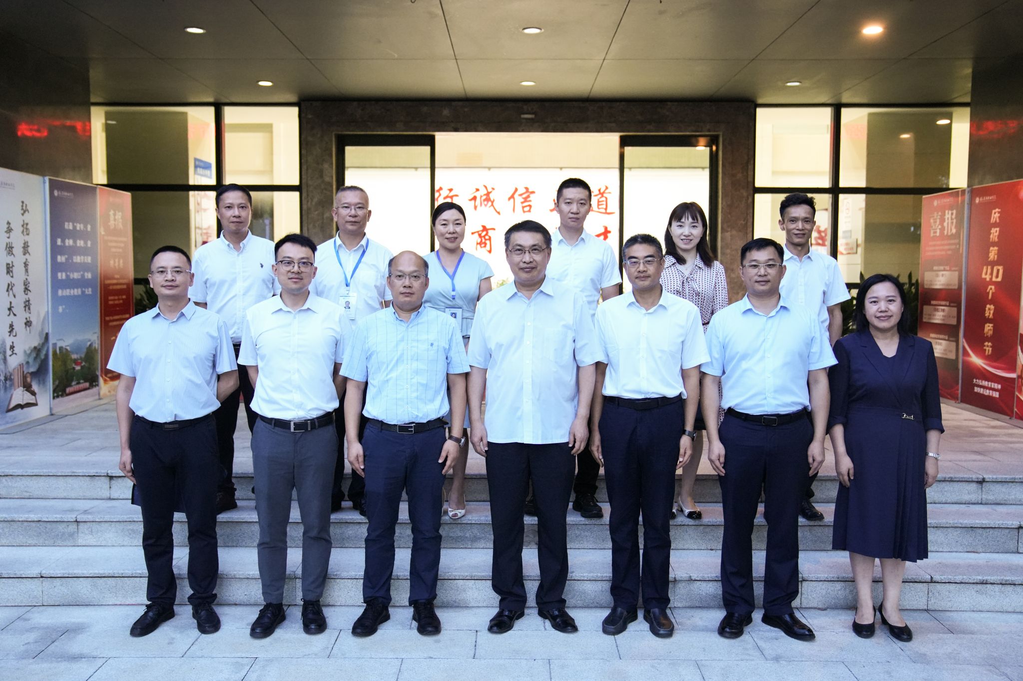 市商务委办公室主任唐勇、规划发展处处长徐英俊、宣传教育处处长苟晓燕、安全生产管理处处长陈朔、宣传教育处副处长倪霞、办公室副主任余林等相关处室领导,学校全体在家校领导,相关职能部门负责人、二级学院党政负责人陪同走访慰问并参加了调研检查工作和座谈会。