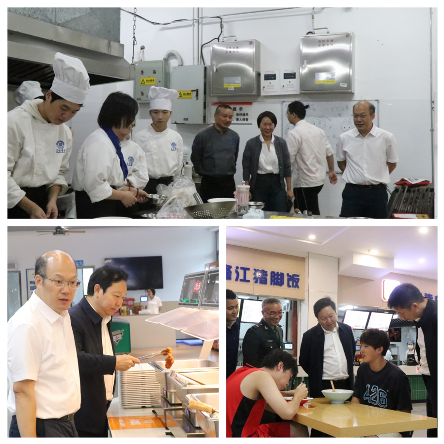 陈忠飞一行先后来到消防控制室、配电房、“一站式”学生社区、餐饮实训中心、食堂等重点场所,对消防安全、食品安全、学生公寓安全、施工安全等进行全面检查。陈忠飞强调,各部门要牢固树立安全稳定底线思维和红线意识,坚决克服麻痹思想;要从严从实抓好安全隐患排查,不走过场、不留死角、不打折扣;要进一步压实安全责任,做到横向到边、纵向到底。舒鸿要求,相关单位和人员要认真做好国庆期间值班值守工作,齐心协力、全力以赴,确保师生平安和校园安全稳定。