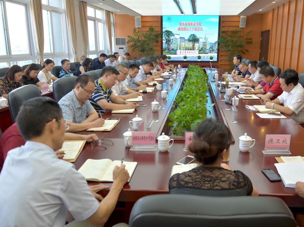 【文/赵晓方  图/贺昌】9月2日,学校党委召开中心组(扩大)学习会议,传达学习习近平总书记在全国宣传思想工作会议上的重要讲话精神,学习贯彻总书记在中央全面依法治国委员会第一次会议和“一带一路”五周年座谈会上的重要讲话精神,学习总书记致2018中国国际智能产业博览会的贺信、韩正同志和陈敏尔同志在智博会开幕式上的致辞,以及学习《中国共产党处分条例》修订的主要内容。党委书记谭勇主持会议并提出具体要求。院长冉光学,副院长丁谦,纪委书记杨守康,副院长张荣、舒鸿及副处级以上干部参加学习会。