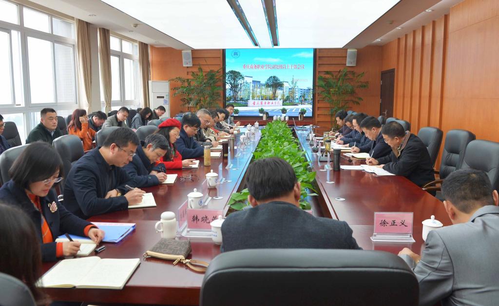 党委副书记、院长冉光学传达了重庆市加强和改进高校思想政治工作座谈会精神。会议强调要准确把握党的十九大提出的新任务新要求,全面贯彻党的教育方针,坚持社会主义办学方向,以立德树人为根本,以理想信念教育为核心,以社会主义核心价值观为引领,切实加强和改善党对高校的全面领导。要大力推动习近平新时代中国特色社会主义思想进教材进课堂进师生头脑,大力培养担当民族复兴大任的时代新人,牢牢掌握高校意识形态工作领导权主导权,切实加强教师队伍和思政工作队伍建设,以党的建设新成效推动高校思想政治工作迈上新台阶。冉光学要求,全校党员领导干部要深入学习贯彻习近平新时代中国特色社会主义思想和党的十九大精神,深入贯彻落实习近平总书记关于加强和改进高校思想政治工作的重要论述;要提高政治站位,强化责任担当,创新方式方法,确保会议精神贯彻到位、落到实处,着力构建党委统一领导、部门上下联动、党政工团齐抓共管的“大思政”工作格局,努力开创新时代商务职业学院思想政治工作新局面。