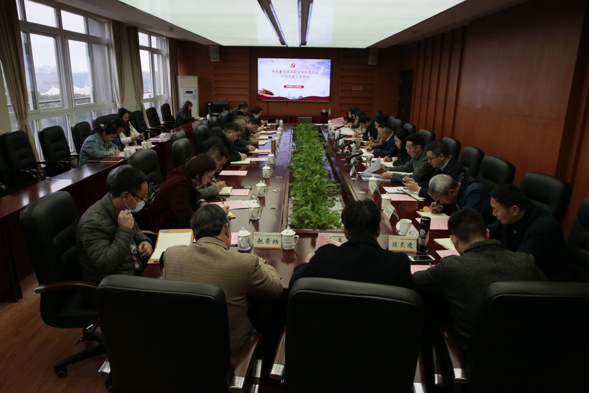 【文/组织人事处 图/党委宣传部】11月29日,学校在第六会议室召开党建工作领导小组会议暨11月党建工作例会。党委书记谭勇主持会议,党委副书记余晓玲、纪委书记杨梅,各党群部门、二级学院党总支、机关党支部负责人参加会议。