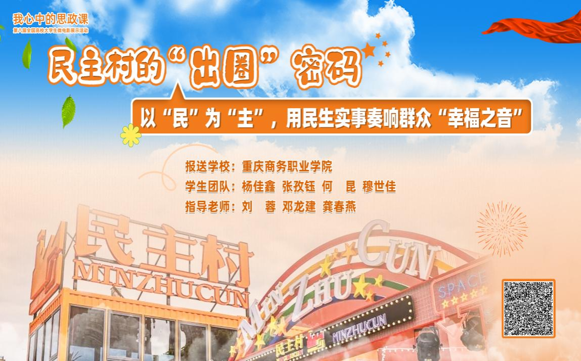 马克思主义学院师生深入民主村进行实地调研和采访,用心用情用力捕捉村民们最真实的生活场景和情感表达,寻找民主村的“出圈”密码。作品通过讲述民主村以城市更新为契机,以“全龄时尚活力生活圈”为目标,大力推动一刻钟便民生活圈建设,展现了民主村在党的领导下焕然一新,发生翻天覆地的变化,以及村民们追求美好生活的生动实践。短片中,民主村的村民们用朴实无华的语言,讲述了自己的亲身经历和感受,脸上洋溢着的幸福笑容,正是中国式现代化以人为本最生动的体现,诠释了山城老百姓生活的幸福之道。