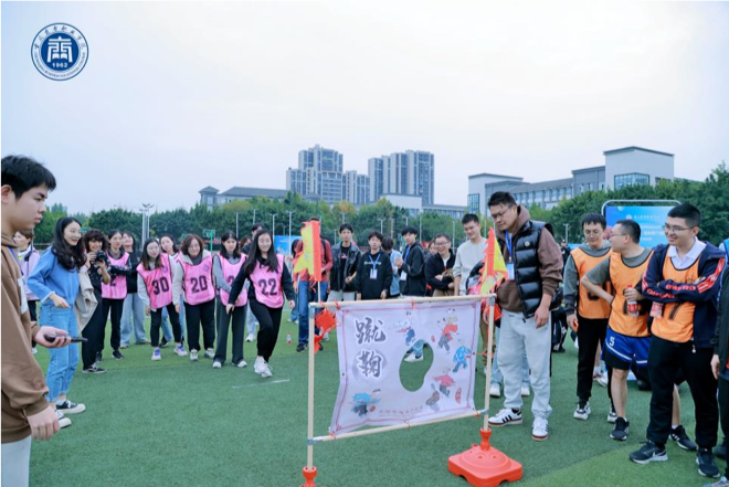 开幕式结束后,校工会紧锣密鼓地组织开展了“团结奋进向未来 凝心聚力谱新篇”为主题的教职工趣味运动会。本次运动会精心策划了五个团体赛项和一个个人赛项,包括“趣味投壶”“一圈到底”“四平八稳”“国风蹴鞠”以及“男女4*100接力赛”“男女实心球”个人赛。现场气氛热烈,教职工们积极参与,共有700余人参与此次运动会。