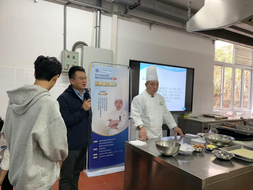 【文/图 烹饪学院】11月6日下午,烹饪学院“烹饪大师名师进校园”系列活动第14期在烹饪实训中心智能演播厅举行。本次活动特邀重庆烹饪大师戴锡元为烹饪专业师生、美食研学社和烹饪科学技术科普社及美食爱好者授课,主题为“开花酥”创意面点制作。