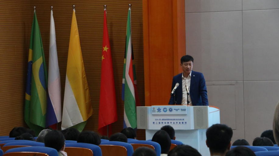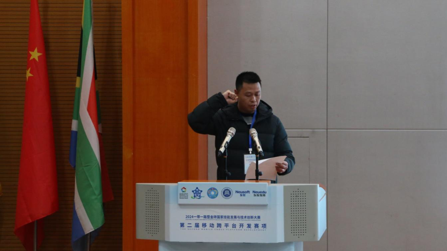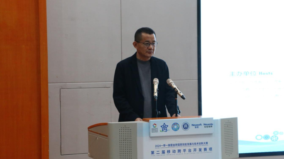 东软教育科技集团副总裁董本清代表大赛组委会致辞。他表示,希望各职业院校、合作伙伴能够积极参与金砖技能发展与技术创新工作组的各项国际合作项目,深化校企合作,共同助力高水平教育对外开放。