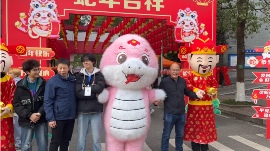 活动现场,师生们从“吉祥如意”门步入活动主场地,在喜庆长廊下,书画协会的同学们现场书写春联,笔墨书浓情,送福到心间。在趣味互动区,各社团结合自身特色为游玩师生提供妙趣横生的互动小游戏,有寓教于乐的成语接龙,有融入传统文化的飞花令、投壶等,欢声笑语连绵不断,节日气氛热烈。主舞台更是活力四射,渝风汉韵汉服社、街舞社、音乐协会的师生们洋溢着青春气息的歌曲舞蹈为活动拉开帷幕。在奖品兑换区,摆放了琳琅满目的奖品,包含特等奖、一等奖、二等奖、三等奖、参与奖等多个奖项,城口乡村振兴产品还作为本次活动特等奖,每一样奖品都激发着同学们的高度热情,他们积极参与到各项活动中。