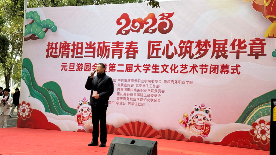 12月30日,学校在“一站式”北山社区成功举办“挺膺担当砺青春 匠心筑梦展华章”元旦游园会暨第二届大学生文化艺术节闭幕式,开展了融合知识性、趣味性和活动性为一体的迎新年游园活动,党委书记江涛、校长陈忠飞来到活动现场与师生互动,近5000名师生参与活动。