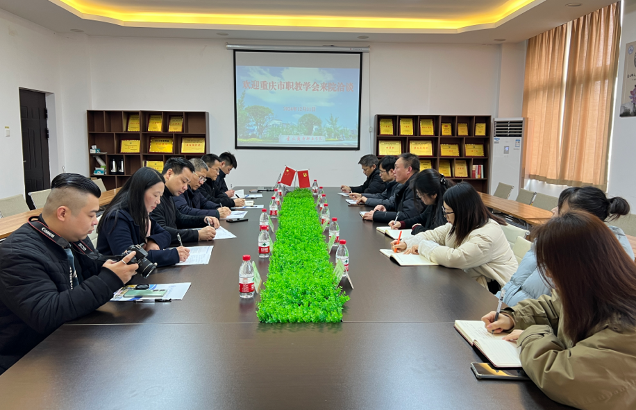 【文/图 建筑工程学院】12月31日下午,重庆市职业教育学会建筑与智能建造专业委员会副理事长兼秘书长戴雪峰,专委会副秘书长杨长红、邓正俐,专委会理事、重庆大学出版社建筑分社社长林青山等一行6人到访学校建筑工程学院考察交流。学校建筑工程学院院长苏启立、建筑工程教研室主任张攀及建筑专业群4名专业负责人参加座谈。
