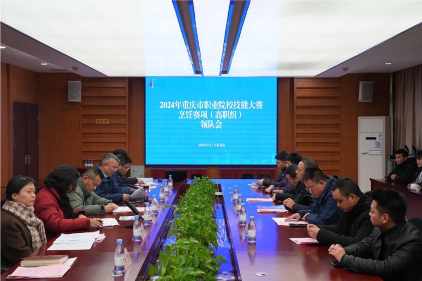 1月9日下午,比赛领队会议召开。副校长贾小波,大赛裁判长、仲裁长、各代表队领队、指导教师、参赛选手参会。领队会上,贾小波代表承办院校致欢迎辞,对各职业院校的参赛选手和指导教师表示欢迎。他强调,烹饪赛项旨在落实国家“健康中国”战略,深化产教融合,共同推进重庆餐饮类专业引领行业发展,为地方经济建设和发展培养更多人才,赋能经济社会和现代职业教育高质量发展,并衷心祝愿各队在比赛中各展风采、取得优异成绩。裁判长详细讲解了比赛规则及赛事注意事项,仲裁长就本次来自市外的9名大赛裁判的产生做了说明,并对比赛流程、裁判打分等做了要求,确保比赛公平公正。