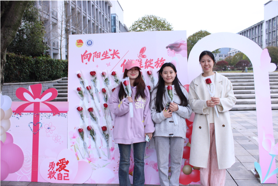 向阳生长,优雅绽放。3月7日清晨,由校团委、妇联主办,校学生会承办的“向阳生长,优雅绽放”三八妇女节主题活动在明德广场温情启幕。活动通过“鲜花祝福+星愿手作+互动打卡”三大板块,为全校女性师生打造专属节日仪式。活动现场,志愿者们手捧鲜花礼盒,向过往女师生递上节日问候。“老师您辛苦了!”“同学节日快乐!”的祝福语此起彼伏。红色玫瑰赠予女同学,寓意“破茧成蝶”的成长潜力;赠予女教师,则致敬其“育人如养花”的奉献精神。在“星愿工坊”区域,师生们用折纸星星装饰“重商星空墙”,寄托对未来的美好祝愿。“希望我的家乡越来越好”“愿家人健康平安”“想在创业大赛中夺冠”等心愿熠熠生辉。现场还设置了“优雅瞬间”摄影区,师生们纷纷驻足拍摄,记录春日里的美丽身影。