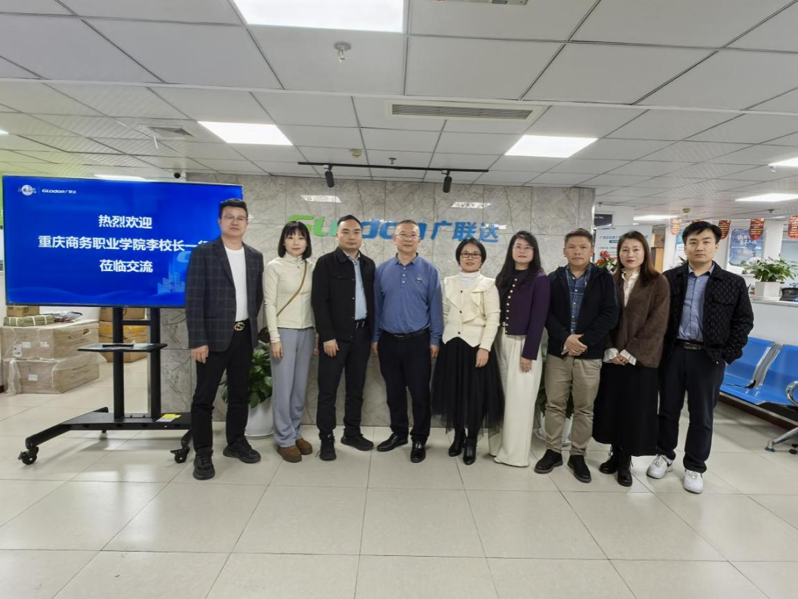 在广联达科技股份有限公司重庆分公司,公司教育事业部李明阳总经理介绍了公司的发展历程、核心技术产品以及在行业内的应用案例。校企双方围绕校企合作、AI赋能人才培养、城市更新等方面进行了深入交流。