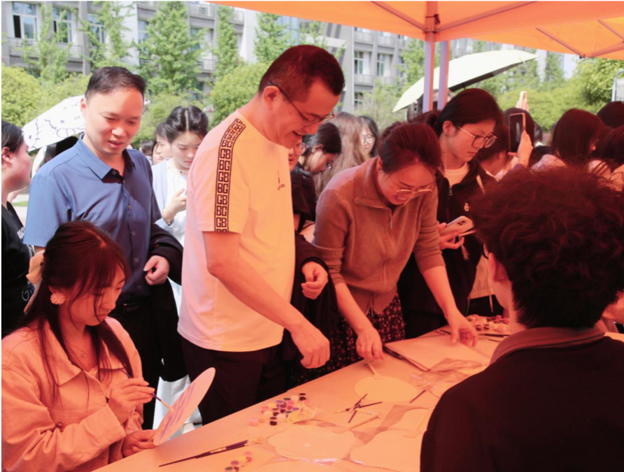 开幕式结束后,师生在明德广场参加第30个“世界读书日”系列活动,包括“阅见世界,智启未来”——读书日主题书展;“书香润心,笔墨传情”——传统文化创作体验的书绘之旅,让师生亲手绘制中国扇、卷轴,用毛笔书法、国画颜料表达阅读的感悟与文化的自信;“非遗新韵·智慧乐园”——传统与现代融合的猜灯谜活动;“数字资源探索季”——知识赋能行动的幸运大转盘;“阅读·疗愈·成长”——心灵书香之旅的书写未来等活动。