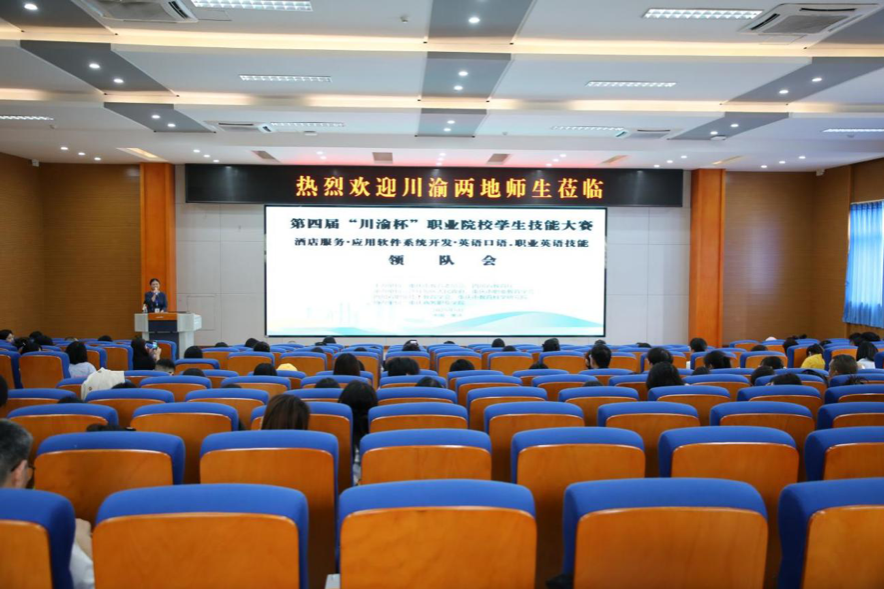 【文/教务处 】5月8日下午,第四届“川渝杯”职业院校学生技能大赛酒店服务、应用软件系统开发、英语口语、职业英语技能4个赛项的领队会在学校学术报告厅召开。本次大赛由重庆市教育委员会、四川省教育厅共同主办,共设置12个赛项,我校承办其中4个赛项。重庆市教科院赛项联系人、仲裁长谢红、傅渝稀、周劼,大赛裁判长车杰、向波,学校副校长李焱,川渝两地裁判、参赛团队师生及我校赛项工作人员参会。