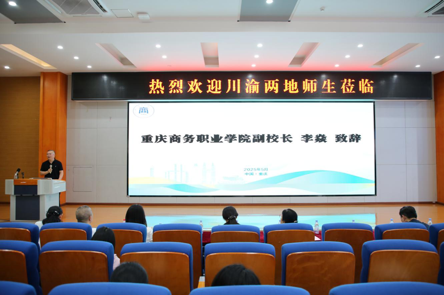 李焱代表学校对川渝教育部门、职教学会、教科院的信任和指导表示感谢,并在致辞中介绍学校的发展情况。他表示“川渝杯”职业院校学生技能大赛已成为川渝两地职教领域的重要品牌活动。学校将借此机会与川渝参赛院校加强交流、互学互鉴,共同推动成渝地区职业教育数字化转型与高质量发展,为职业教育现代化建设注入新动能。学校将高标准、严要求、优服务,全力保障赛事圆满完赛。最后预祝参赛团队在比赛中取得优异成绩,展示良好风采。