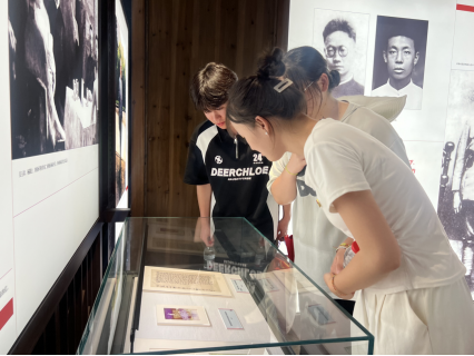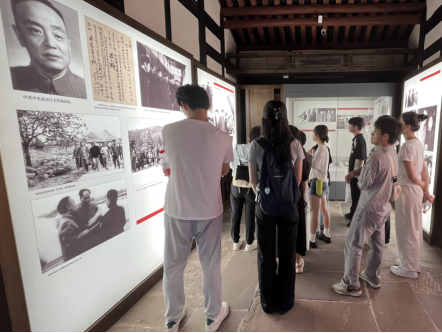 在讲解员的生动讲述中,师生们依次参观“序厅”“少年立志”“投身革命”“建设年代”“改革开放”“亲情乡情”六大展区。泛黄的手稿、磨损的旧衣、斑驳的煤油灯……一件件珍贵文物无声诉说着杨尚昆同志“初心如磐、使命在肩”的一生。从青年时期在成都求学时接触进步思想,到加入中国共产党后辗转上海、莫斯科从事地下工作。从延安时期参与中央办公厅机要工作,到改革开放后主持中央办公厅日常工作、推动机关运转规范化……每一张照片、每一段文字,都让师生们深切感受到老一辈革命家“忠诚、干净、担当”的政治品格。