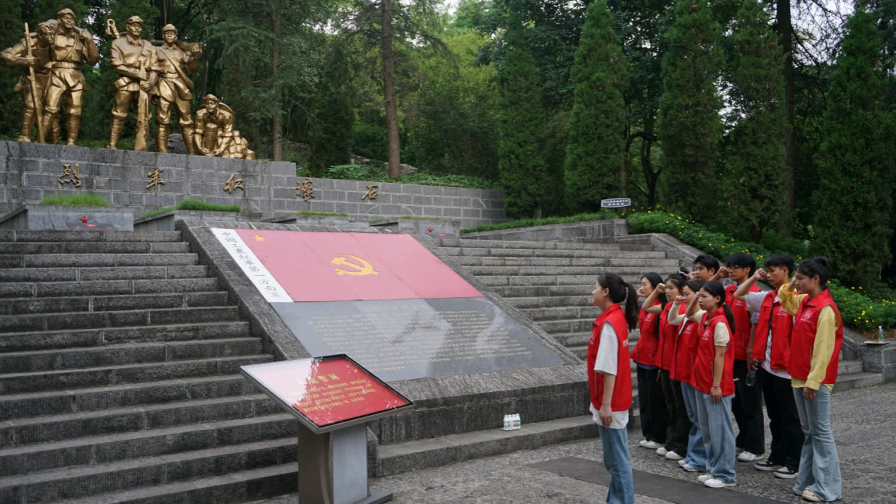 在石壕红军烈士墓,实践团成员在烈士纪念碑前列队肃立,向革命先烈致敬,并鞠躬默哀,表达深切的哀思和崇高的敬意,实践团党员同志重温入党誓词,誓言继承先烈遗志,不忘初心、牢记使命,为实现民族复兴的伟大梦想努力奋斗。