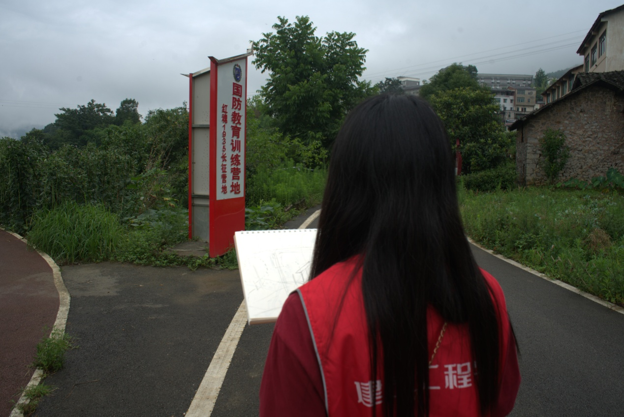邱石坝大田是红军长征过境綦江征集、运送物资、宿营的重要场所,是军民鱼水情深的重要历史见证。如今这里生机勃勃,实践团设计类专业学生以美丽乡村建设和红色研学融合为思路,在参加乡村振兴大赛基础上再次进行艺术创作。有的同学对石壕镇红色旅游资源进行一线标注,设计“红色研学”线路;有的同学把红军宿营地和乡村旅游相结合,规划特色项目;有的同学设计石壕“红色研学”卡通形象;还有同学对乡村外貌进行重新包装设计,突出“长征精神”的印记。
