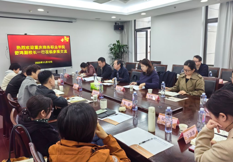 【文/图 图书馆】为科学规划我校图书馆建设,学习先进经验,2025年11月12日上午,我校副校长舒鸿,图书馆、后勤基建处等相关部门负责人等一行8人赴重庆工商大学图书馆进行考察交流。重庆工商大学副校长李国军、重庆工商大学图书馆党总支书记陈翠岚、图书馆馆长杨光祥及相关部门负责人热情接待并陪同交流。