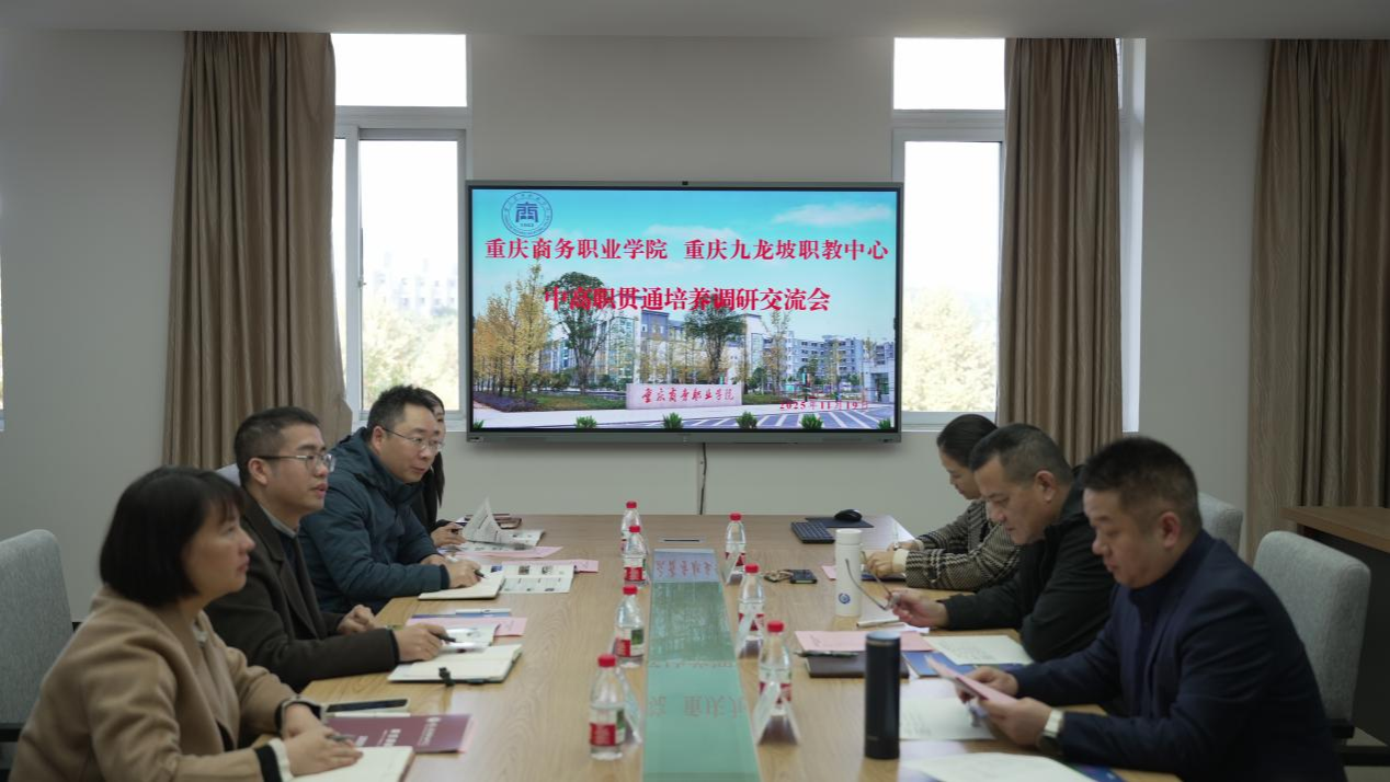 会上,贾小波副校长对九龙坡职教中心一行的到来表示热烈欢迎,围绕我校中高职贯通培养的办学理念、课程体系构建、师资队伍建设及人才培养成效等方面作详细介绍。黄钧浩介绍了九龙坡职教中心的办学特色、专业布局及贯通培养项目推进需求,双方聚焦人才培养方案一体化设计、课程衔接标准制定、教学管理协同等核心议题展开深入研讨,分享了中高职贯通培养模式的实践经验与创新思路,达成多项共识。