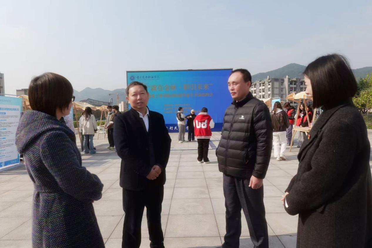 副校长贾小波、副校长舒鸿在招聘会现场与用人单位代表和毕业生亲切交流,了解企业用人需求,听取对高校人才培养的建议;鼓励学生保持平和的心态,积极努力地争取,充分展现自身优势,利用专场招聘会为自己赢得更多的就业机会。