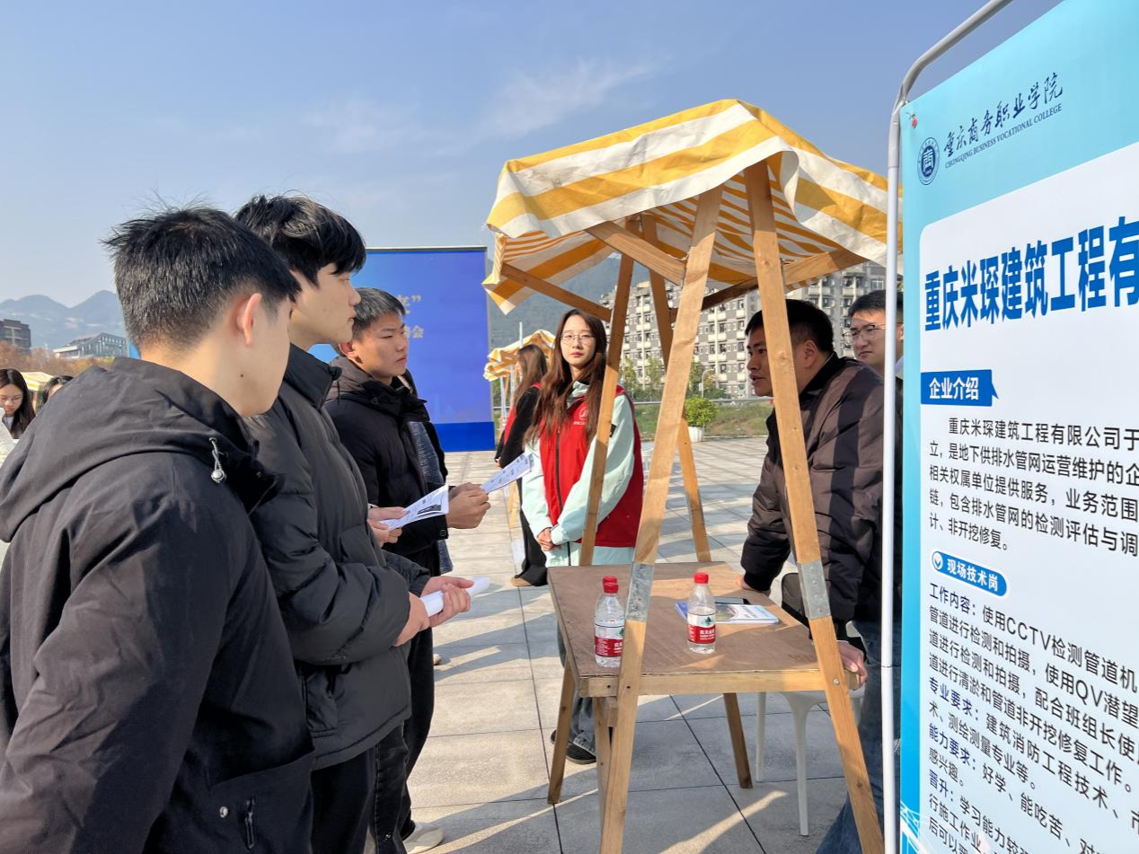【文/图 建筑工程学院】11月26日,为促进毕业生高质量充分就业,建筑工程学院与招生就业处在明德广场共同举办“‘就’在金秋·‘职’引未来”2026届毕业生线下专场招聘会。本次招聘会共有建筑安装、商贸服务等行业领域的11家企业参会,提供100余个就业岗位。