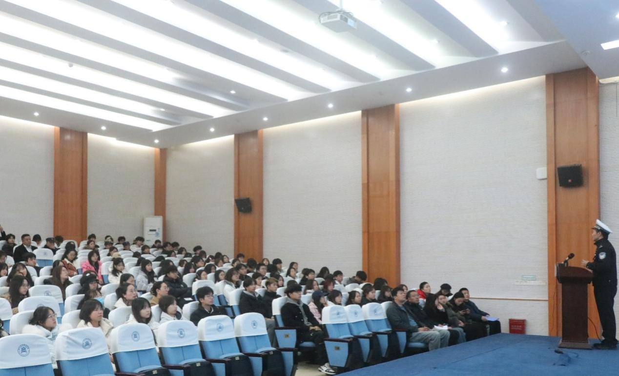 12月3日,学校特邀重庆市公安局沙坪坝区公安分局交管支队物流园大队副队长谭杰,在行政楼一会议室开展道路交通安全知识讲座,各二级学院学团办主任、师生代表、党委保卫部以及新大正物业相关人员参加讲座。