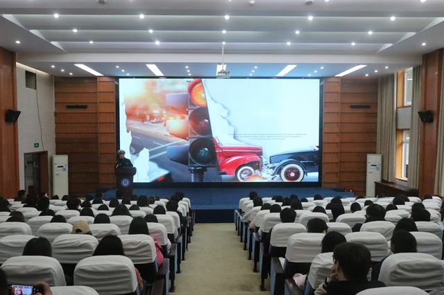 讲座中,谭警官结合真实的交通事故案例,通过视频播放、现场问答等形式,直观剖析了不按规定出行、骑行非机动车不戴头盔等习惯存在的危险性,同时结合校园内部及周边出行场景,详细讲解了应急避险以及预防交通事故的技巧,引导学生自觉遵守交通法规,弘扬守规明礼的出行美德,提升师生交通安全意识与文明素养。