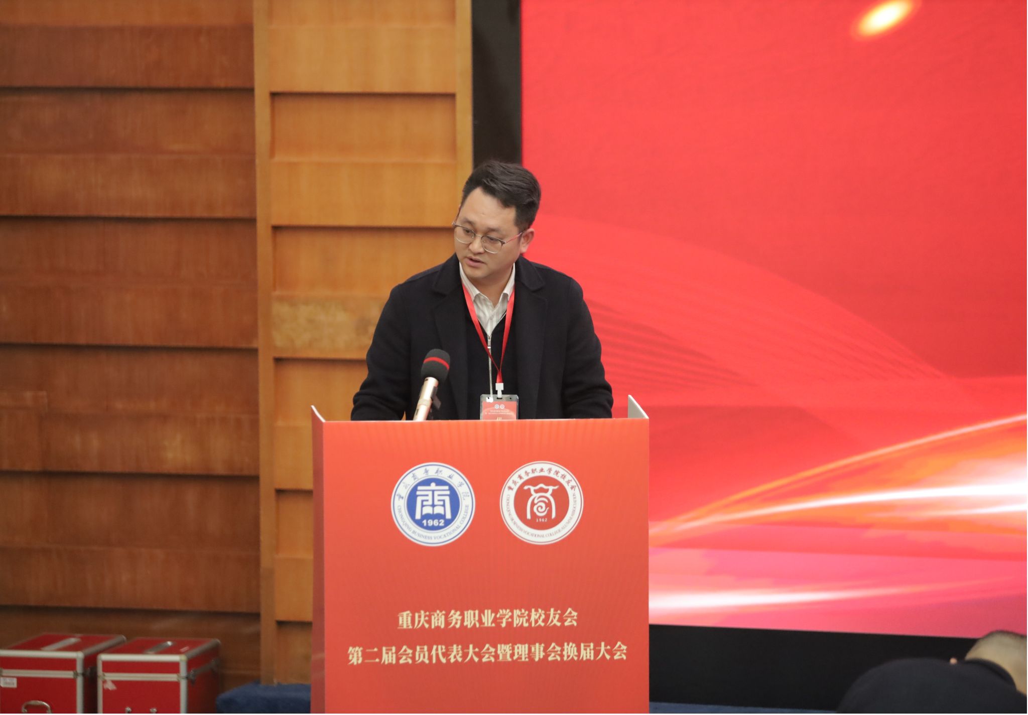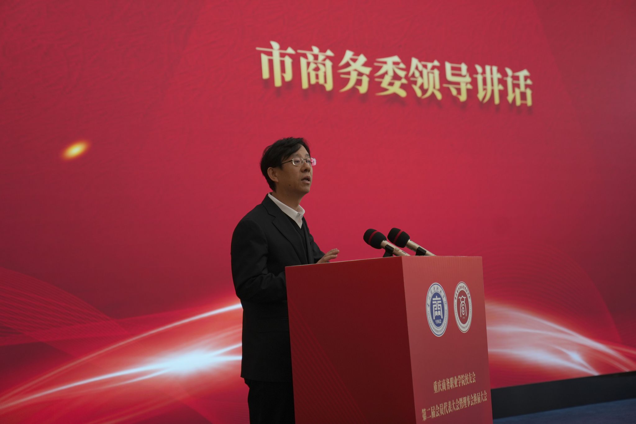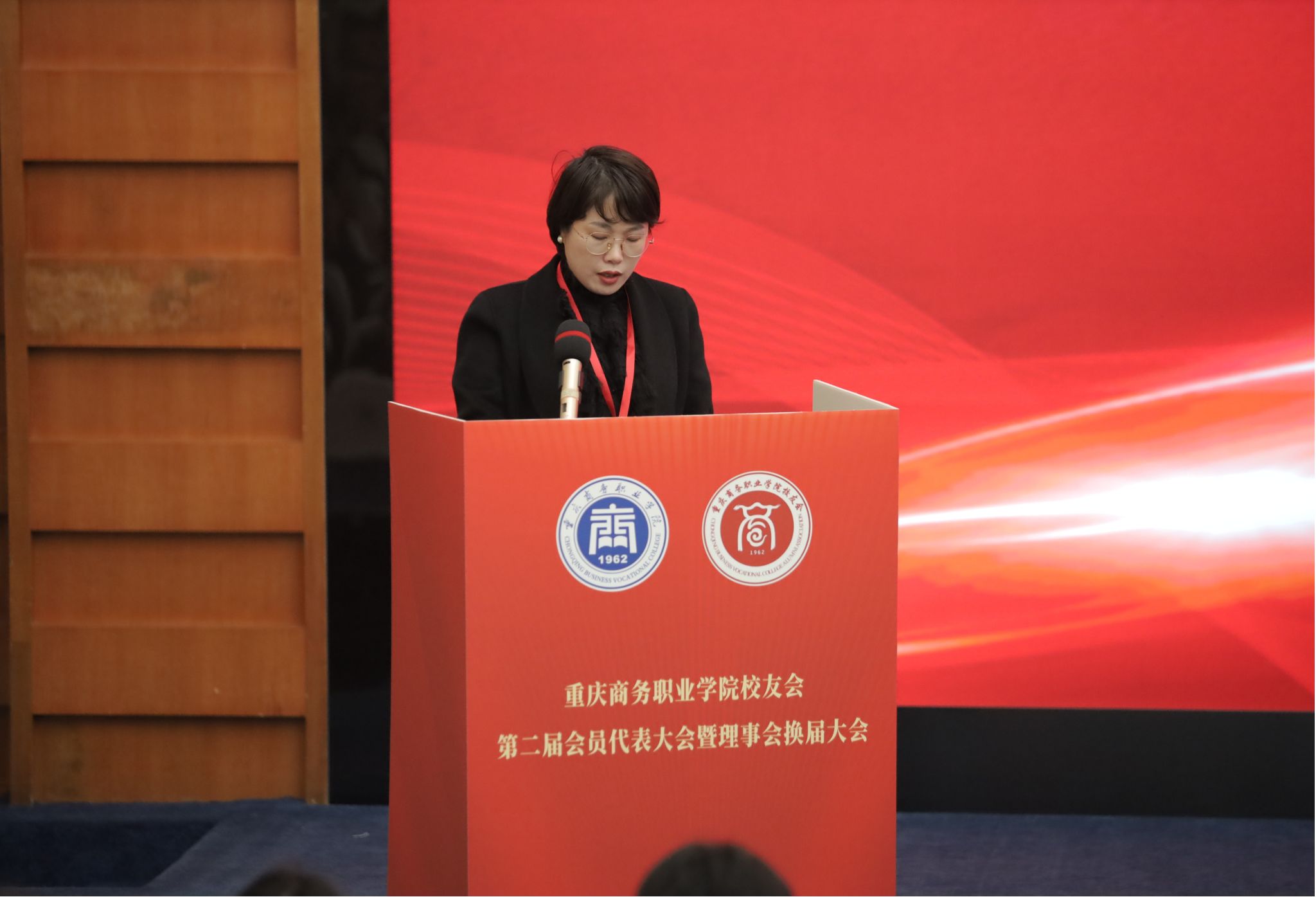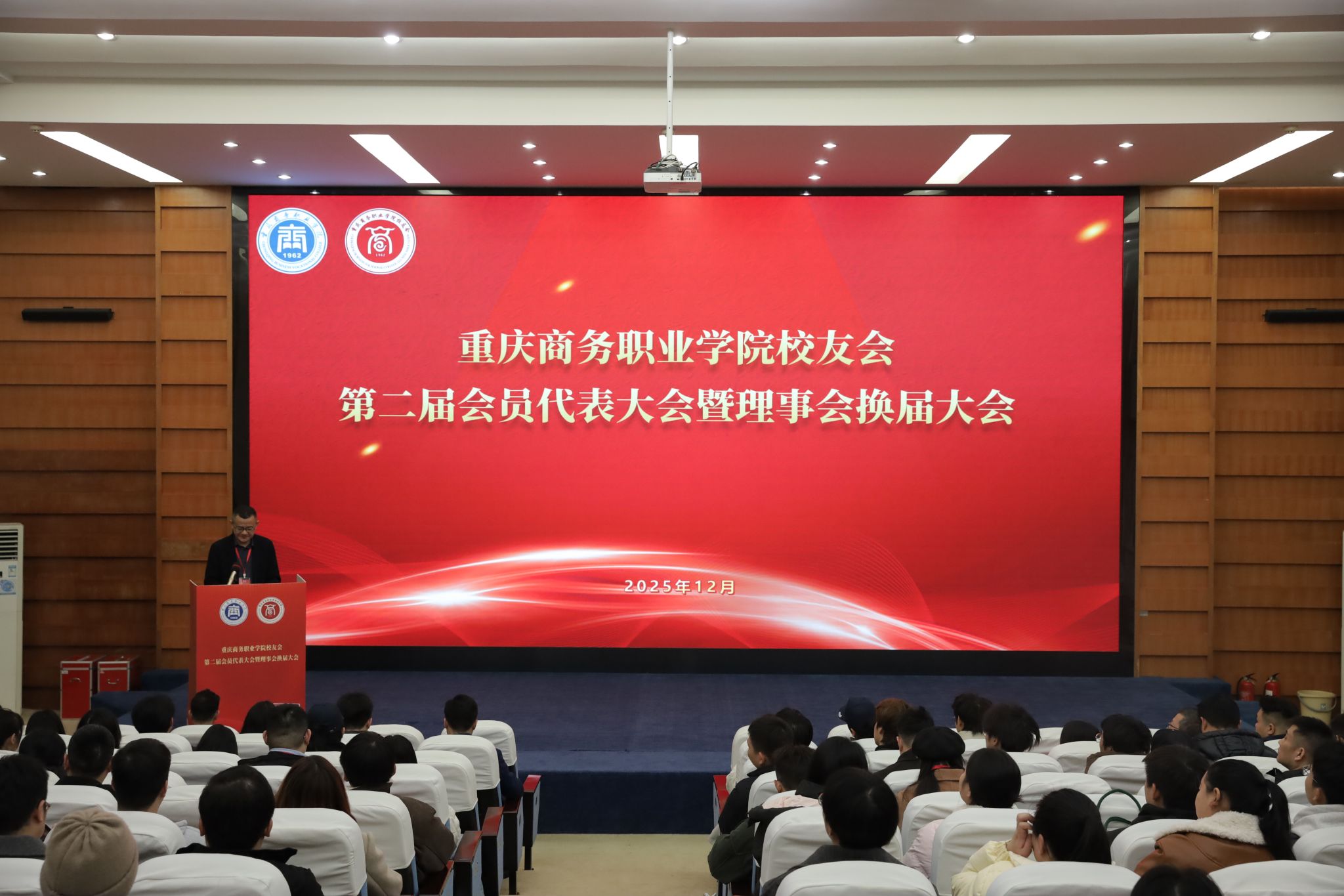12月5日,重庆商务职业学院校友会第二届会员代表大会暨理事会换届大会在学校第一会议室召开。重庆市商务委行业社会组织综合党委专职副书记高文,宣传教育处一级调研员叶冠兰到校指导工作。党委委员、副校长贾小波、管军主持会议。校友会会员代表,在家校领导,相关职能部门、二级学院负责人共计160余人参加会议。