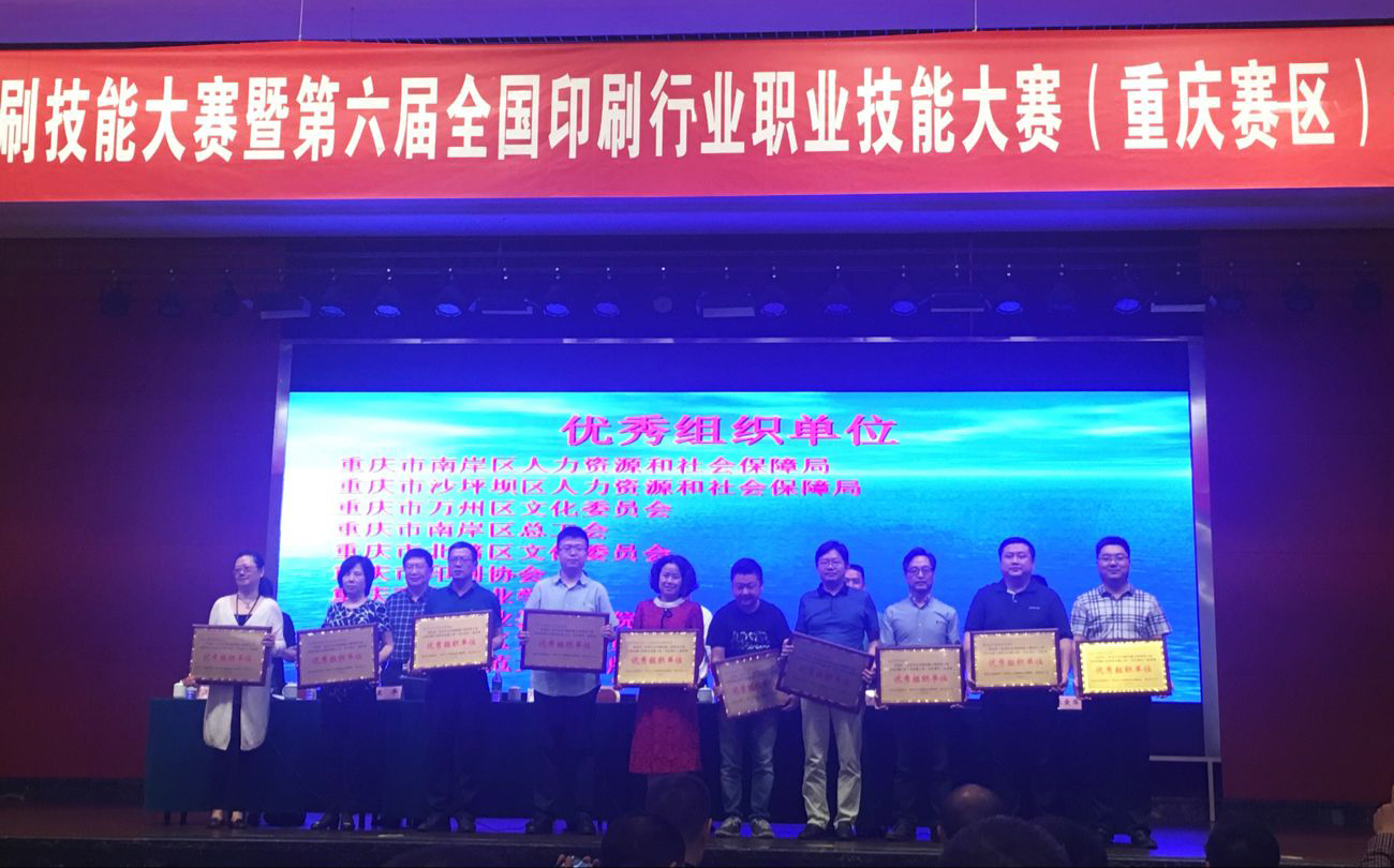 【文/黄永 图/魏颉、于明伟】5月4日,重庆市文化委、重庆市人力资源和社保局、重庆市总工会联合举办第三届重庆市印刷技能大赛暨第六届全国印刷行业职业技能大赛(重庆赛区)。学校荣获优秀组织奖;出版传媒系魏颉、于明伟两位老师分別被评为优秀工作者、优秀裁判员;我校选手包揽平版制版工(学生组)竞赛(该赛事被纳入重庆市一类竞赛)前5名,学生获一等奖1个,二、三等奖各2个。其中,15级图文信息处理专业学生陆舒榆获一等奖,15级图文信息处理2班薛微、16级图文信息处理2班唐颖获得二等奖,3名同学将代表重庆市参加该项目的国赛。
