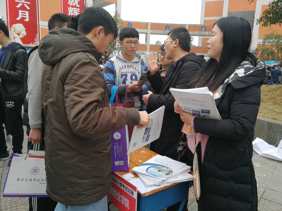 【文/图 贺昌】2月26日,市招考院组织的春季招生宣传巡展在巫溪白马中学举行,全市共三十六所高职院校参加。巡展现场,近千名学生纷纷前来咨询相关事项。在重庆商务职业学院巡展台前,同学们积极踊跃了解学校情况,巡展人员对他们的提问一一解答。根据了解学校的区位优势、专业特色以及就业情况,同学们纷纷表示要报考重庆商务职业学院。