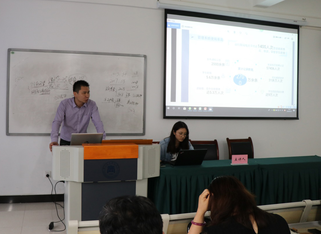 学工部副部长为参会老师讲解并示范了学生管理系统的操作流程,并对每个环节都作了要求。他希望,与会人员充分利用好信息化平台,做好学生基础信息完善工作,逐渐从事务性工作向学生成长、成才引领性工作转变。