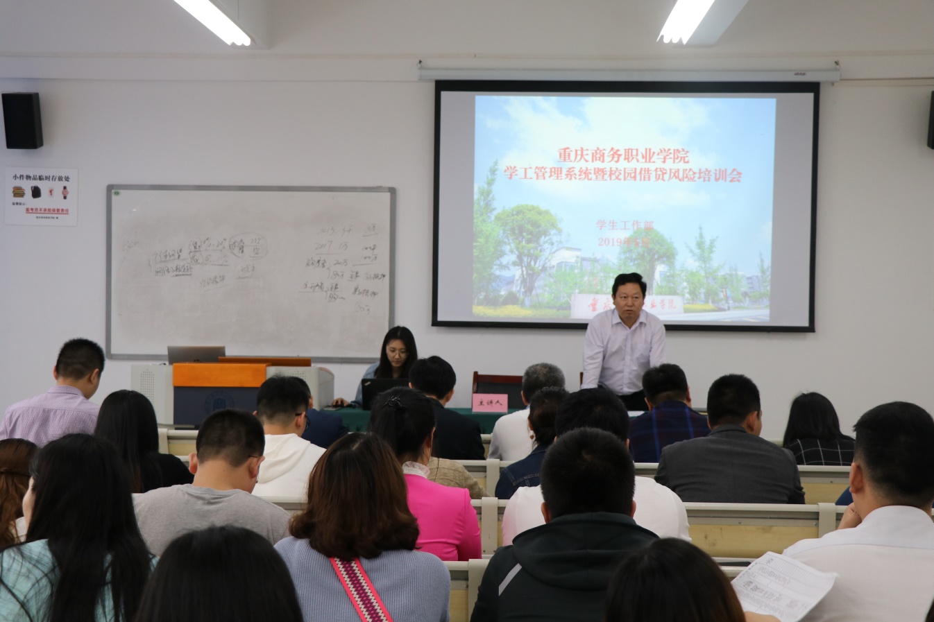 学工部相关人员结合市教委关于大学生网络借贷防范工作会议精神进行了校园网络借贷风险防范培训,从什么是校园网络借贷、目前面临的形势、我们如何真正做好网络借贷的防范工作等3个方面与参会人员作了交流。
