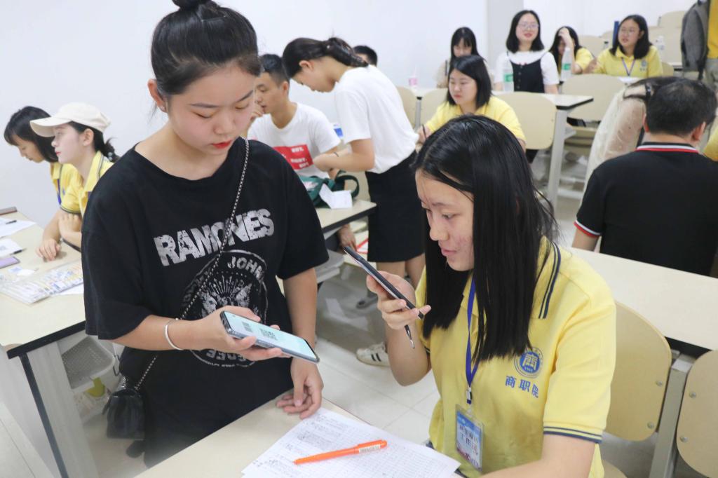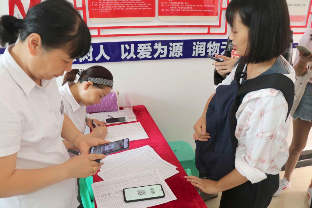“他们比我们当年方便多了,”迎新志愿者黄雨欣说,“新生来到学校,由我们带到公寓通过app生成的二维码扫码入住了宿舍,整理完内务后,他们只须带上录取通知书去辅导员处再次扫码报到,整个流程顺利的话5分钟内就完成了”。