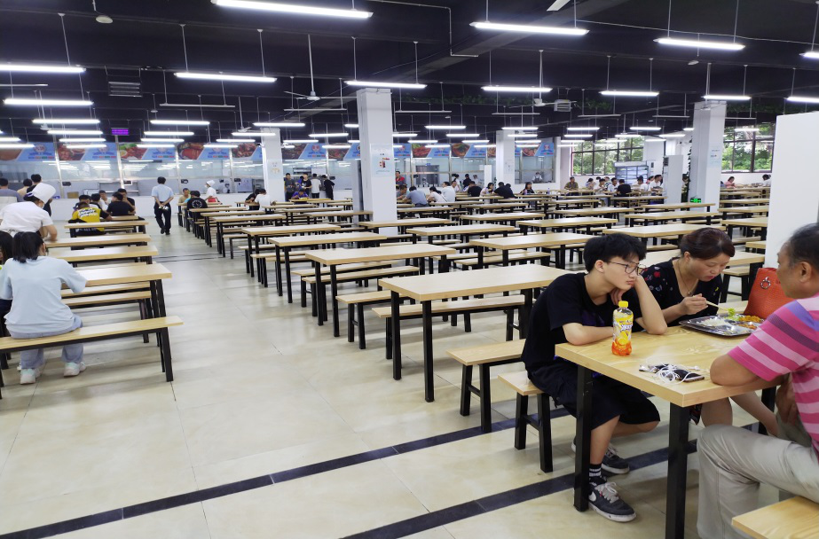 蒲星敏介绍到,学校南岸校区新食堂于2020年9月3日正式与师生见面。新食堂就餐面积共计700平米,预计同时能容纳1000人同时就餐。就餐区座椅大气美观,安装风扇和空调,就餐环境宜人。