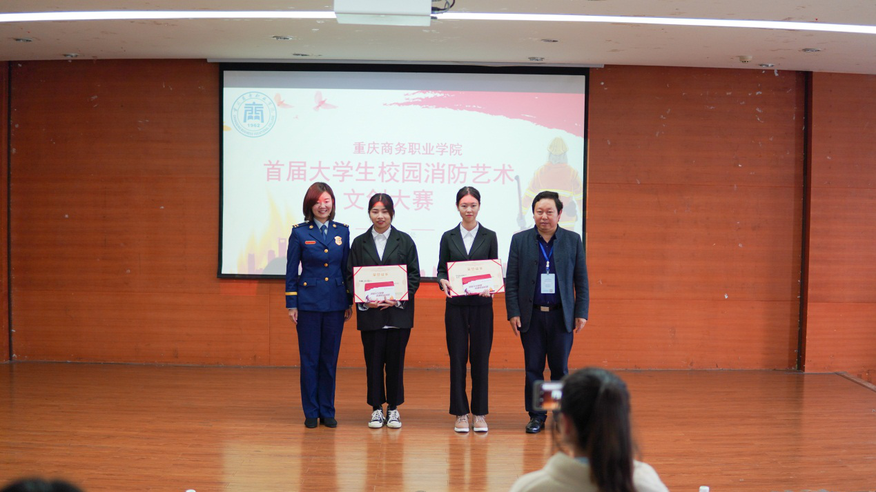 副院长舒鸿、沙坪坝区消防救援支队综合指导干部喻睿为一等奖选手颁奖