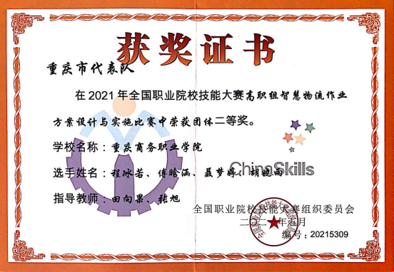 【文/图 商贸管理系】2021年全国职业院校技能大赛高职组(中诺思杯)智慧物流作业方案设计与实施赛项于2021年6月17日至19日在天津交通职业学院举行,来自全国30个省市自治区30个代表队的120名选手进行激烈角逐。学校商贸管理系2019级物流管理专业学生程冰若、傅晗涵、胡晓雨、聂梦婷在比赛中沉着应战、密切合作、准确高效地完成竞赛任务,最终以总成绩第六名荣获“智慧物流作业方案设计与实施”赛项团体二等奖。