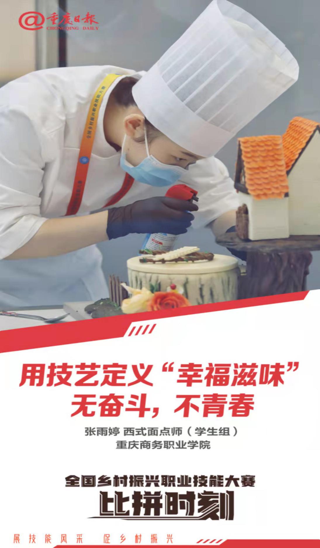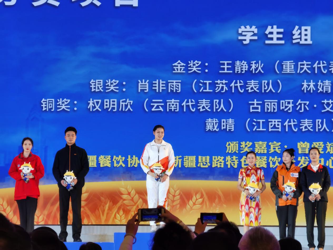 【文/图 烹饪学院】9月28日,由人力资源和社会保障部、国家乡村振兴局、新疆维吾尔族自治区人民政府主办的全国乡村振兴职业技能大赛在新疆国际会展中心成功闭幕。学校烹饪学院学生王静秋获金奖、教师吴艳洁获铜奖、学生张雨婷获优胜奖,由学校培养的万州技师学院教师周德琼获餐厅服务项目职工组优胜奖。