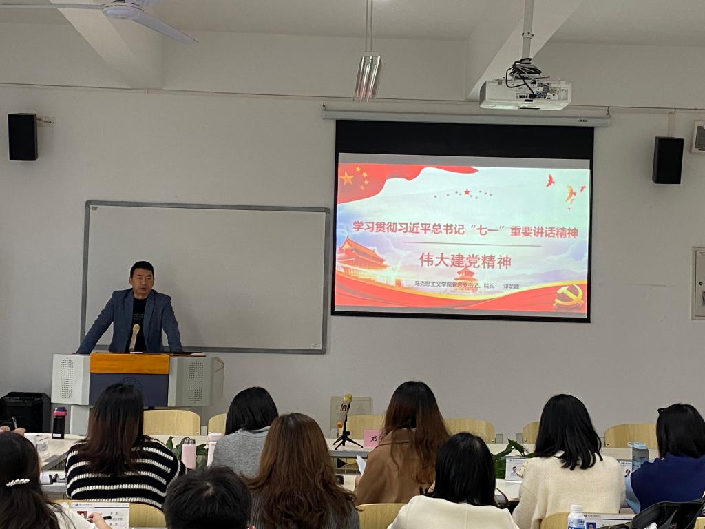 【文/图 马克思主义学院】10月20日下午,马克思主义学院党总支书记、院长邓龙建在2213党员活动室以《伟大建党精神——学习贯彻习近平总书记“七一”重要讲话精神》为题,给马克思主义学院全体35名教师党员讲授了一堂主题鲜明、生动详实的专题党课。